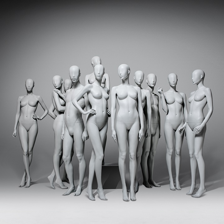 Contrasting the mysterious abstract female mannequin, we have our realistic ladies.