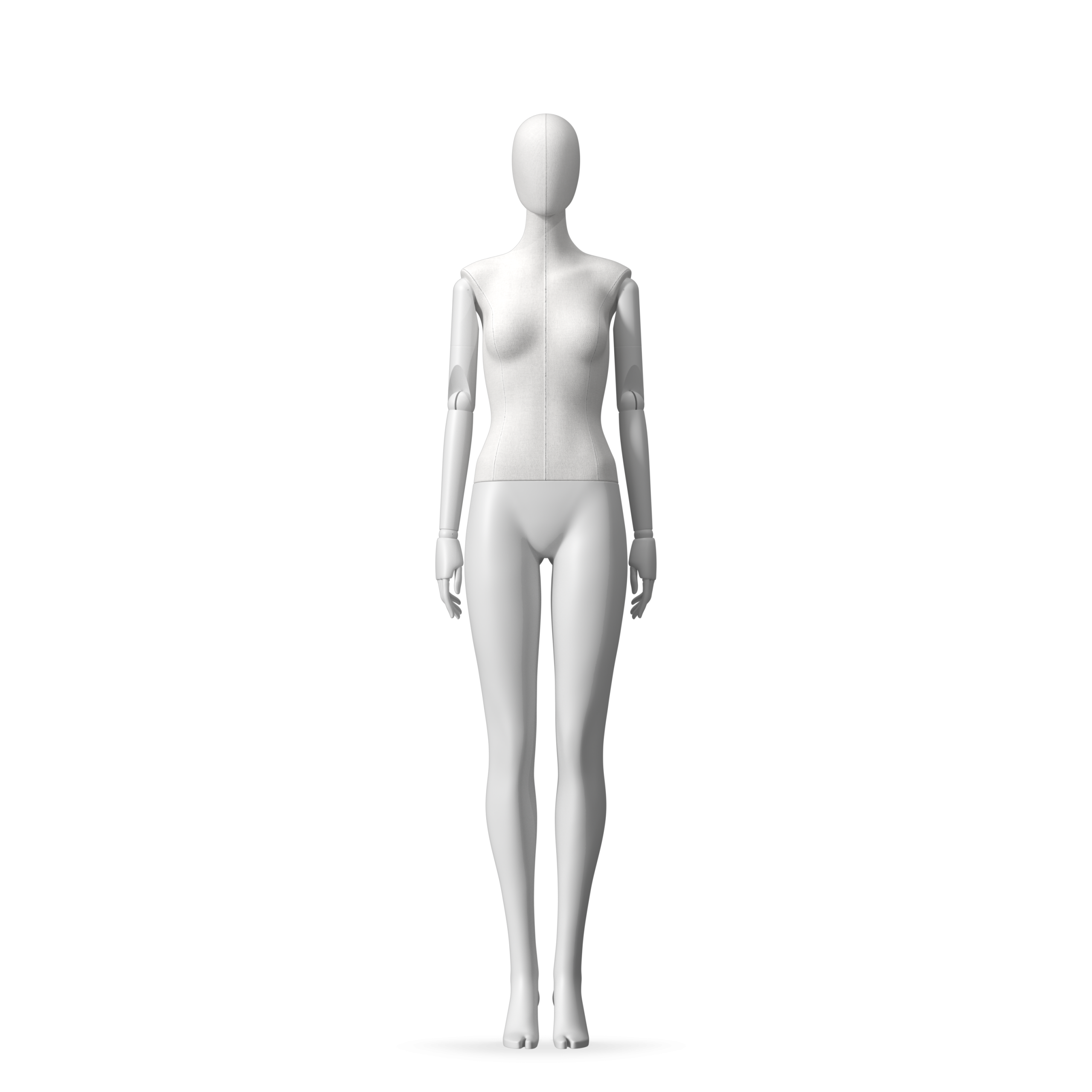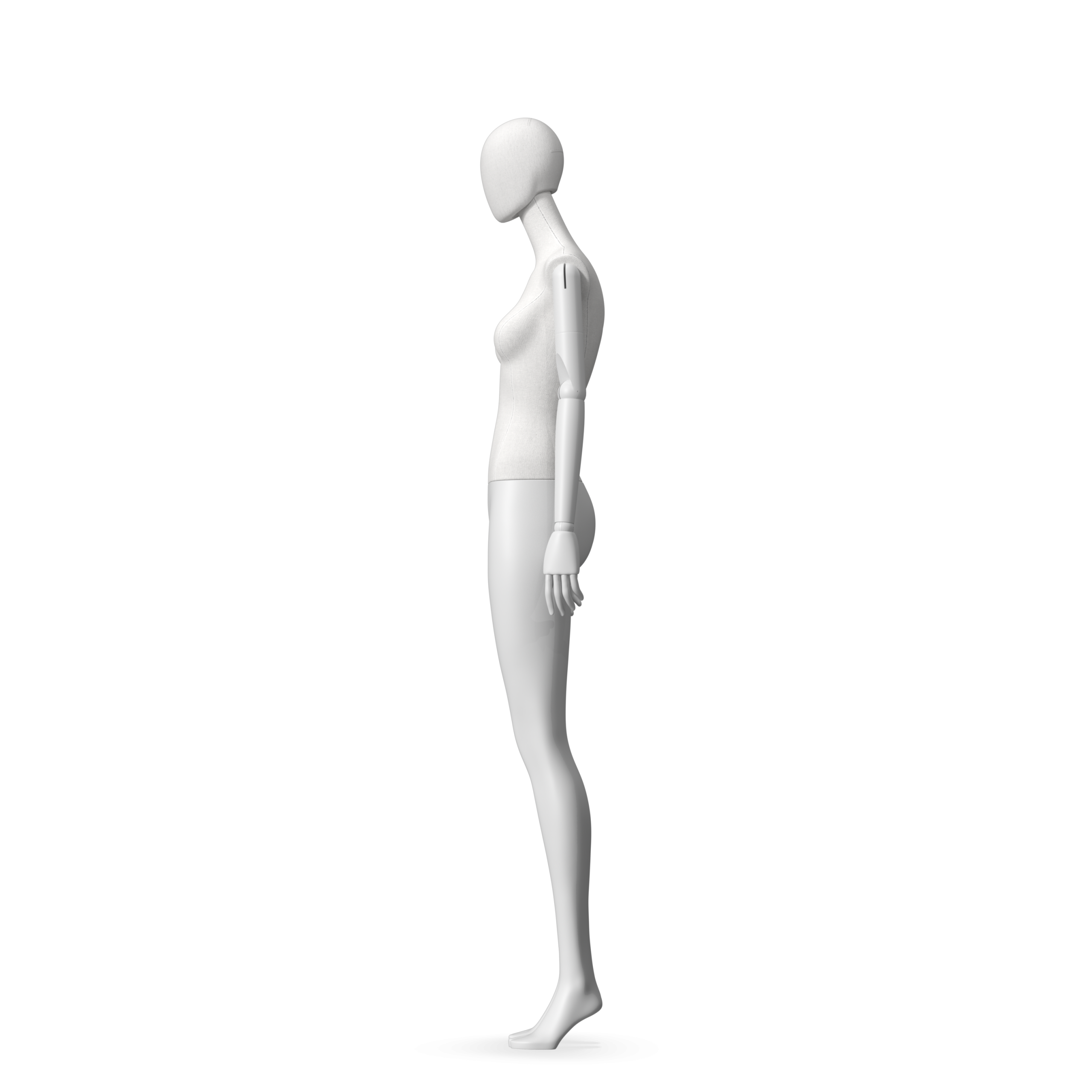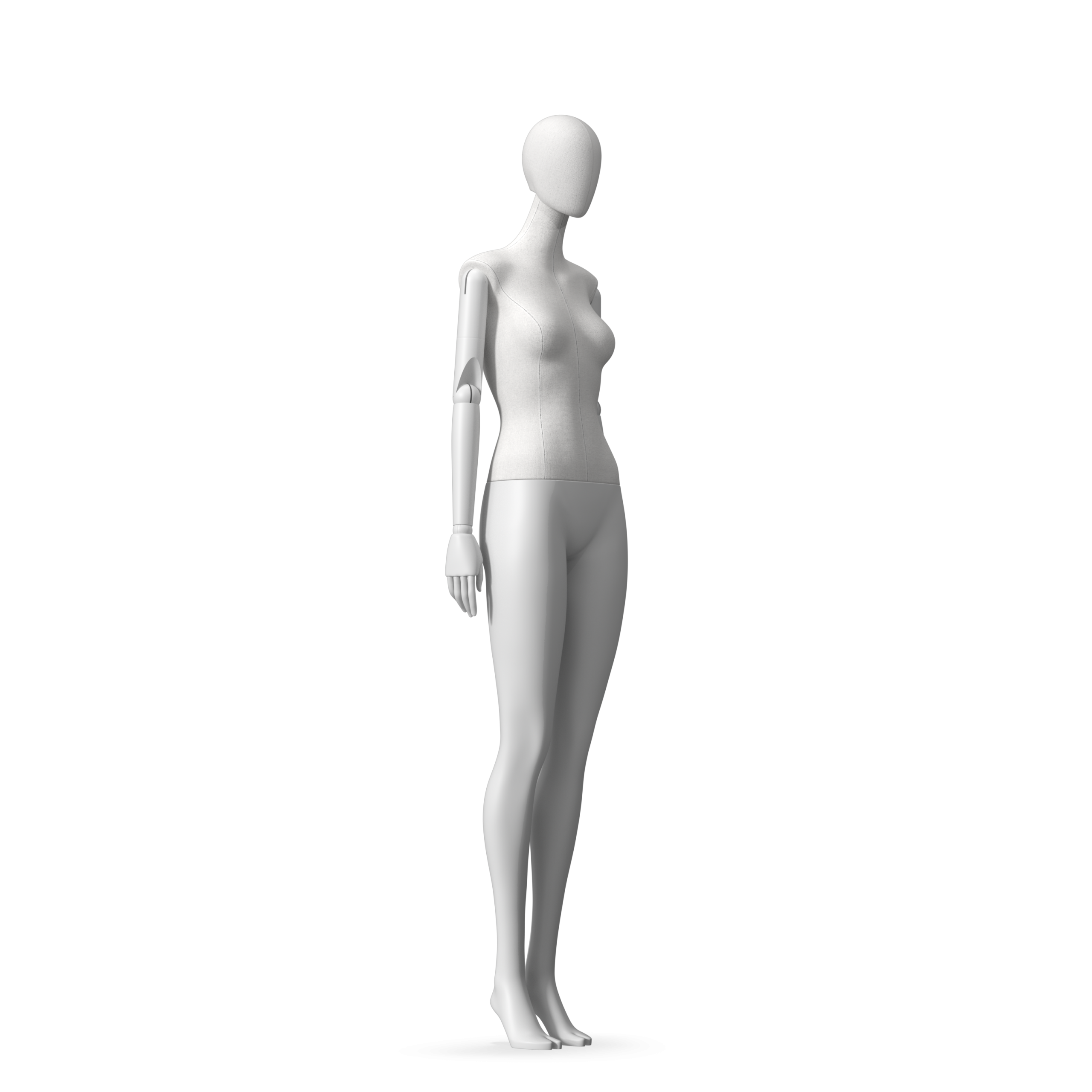 The Female Radiant Fabric is covered with fbr-amjf640 canvas linen look fabric and has C8 white matte, wooden articulated arms. She has a detachable 360˚ Egg Head with a NO-GAP design. Different head options can be ordered seperately. A 42cm Round Glass Base with a Silver Chrome Upright & Calf Pin is included.