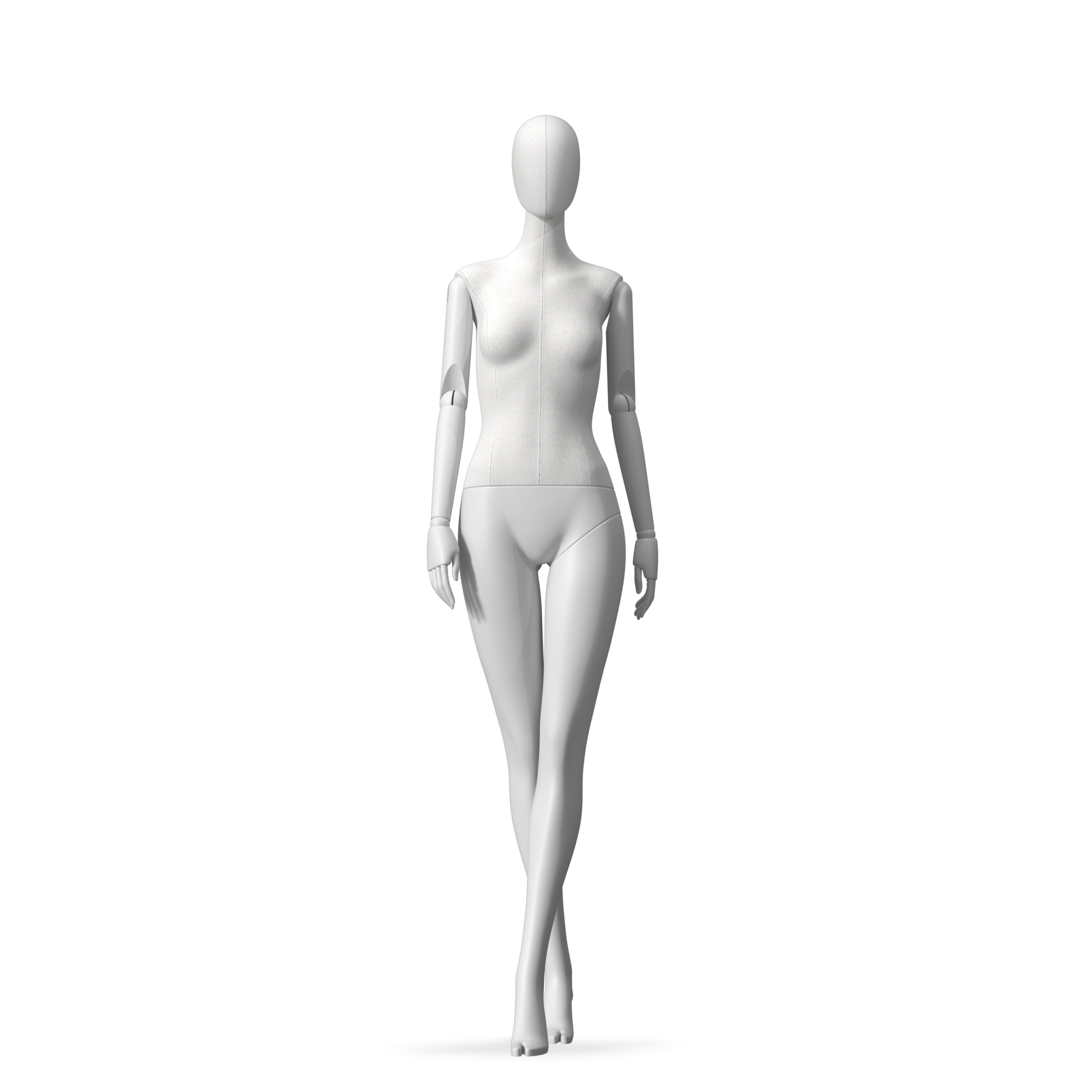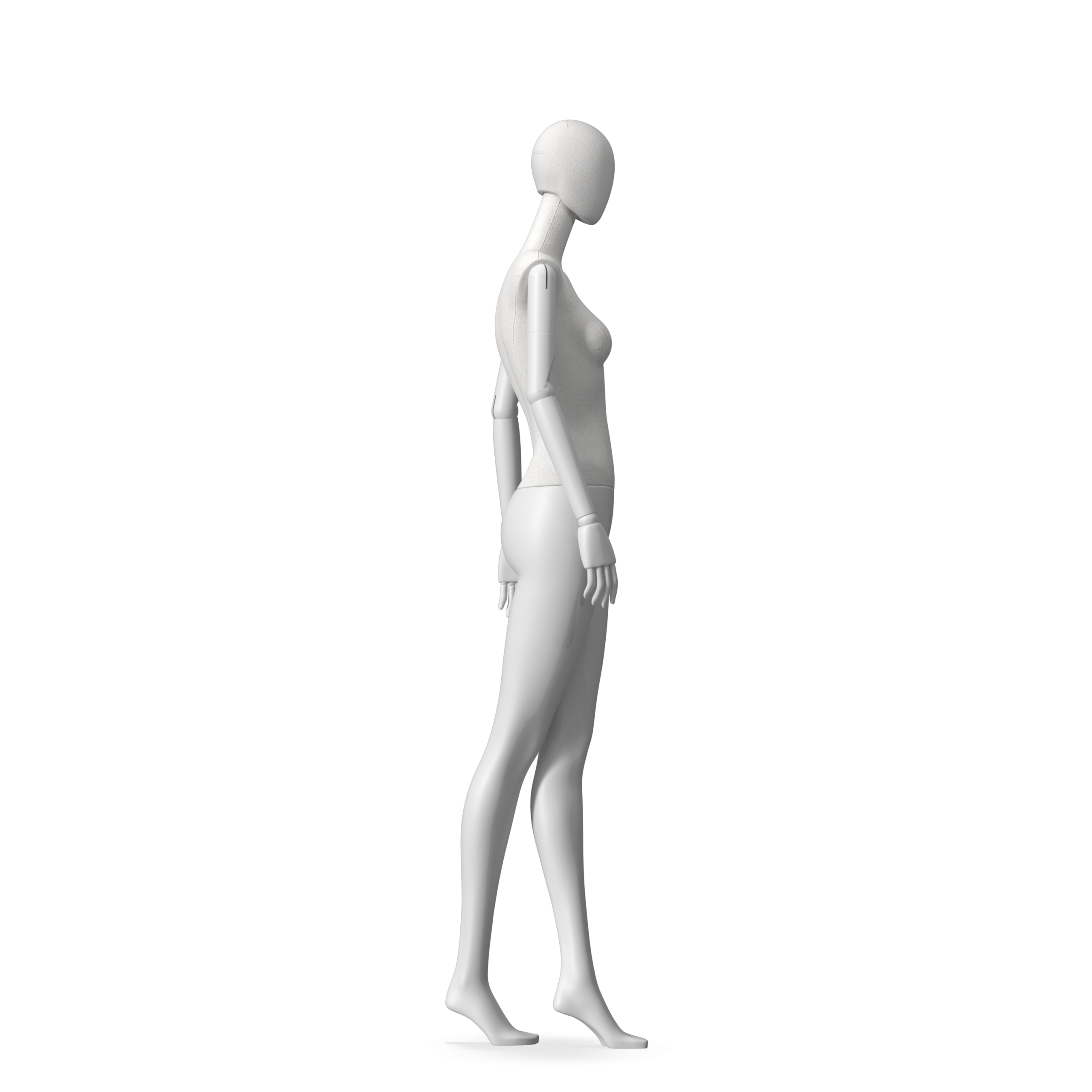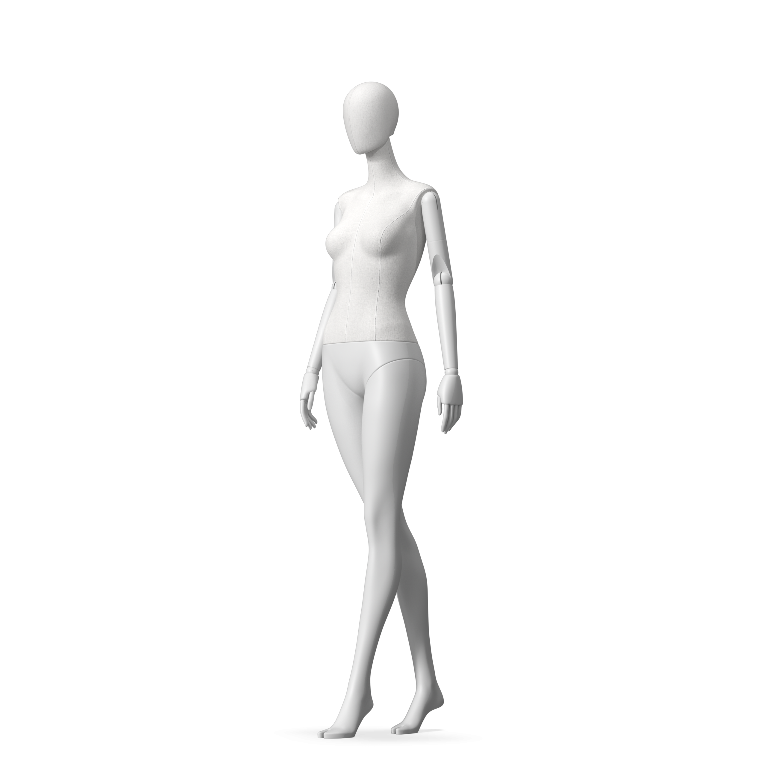 The Female Radiant Fabric is covered with fbr-amjf640 canvas linen look fabric and has C8 white matte, wooden articulated arms. She has a detachable 360˚ Egg Head with a NO-GAP design. Different head options can be ordered seperately. A 42cm Round Glass Base with a Silver Chrome Upright & Calf Pin is included.
