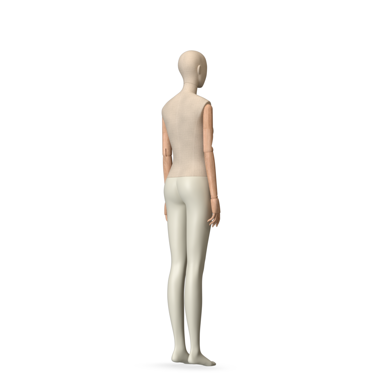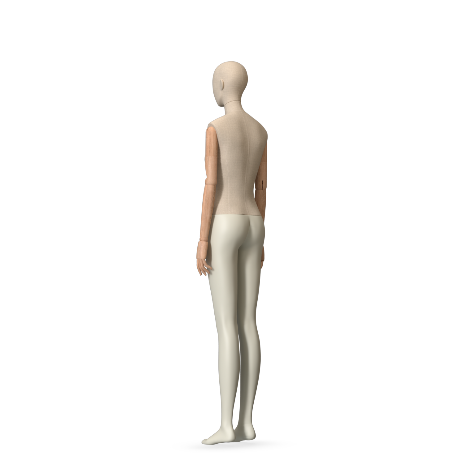 The Female Canvas Articulated has a body with Amjf 643 Canvas Linnen,Pantone 9225C matte legs and Natural Wood articulated arms with Non-Art fingers.