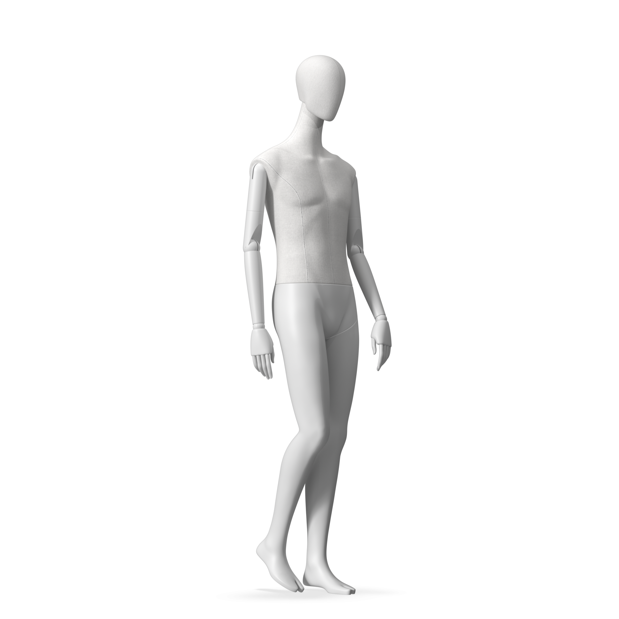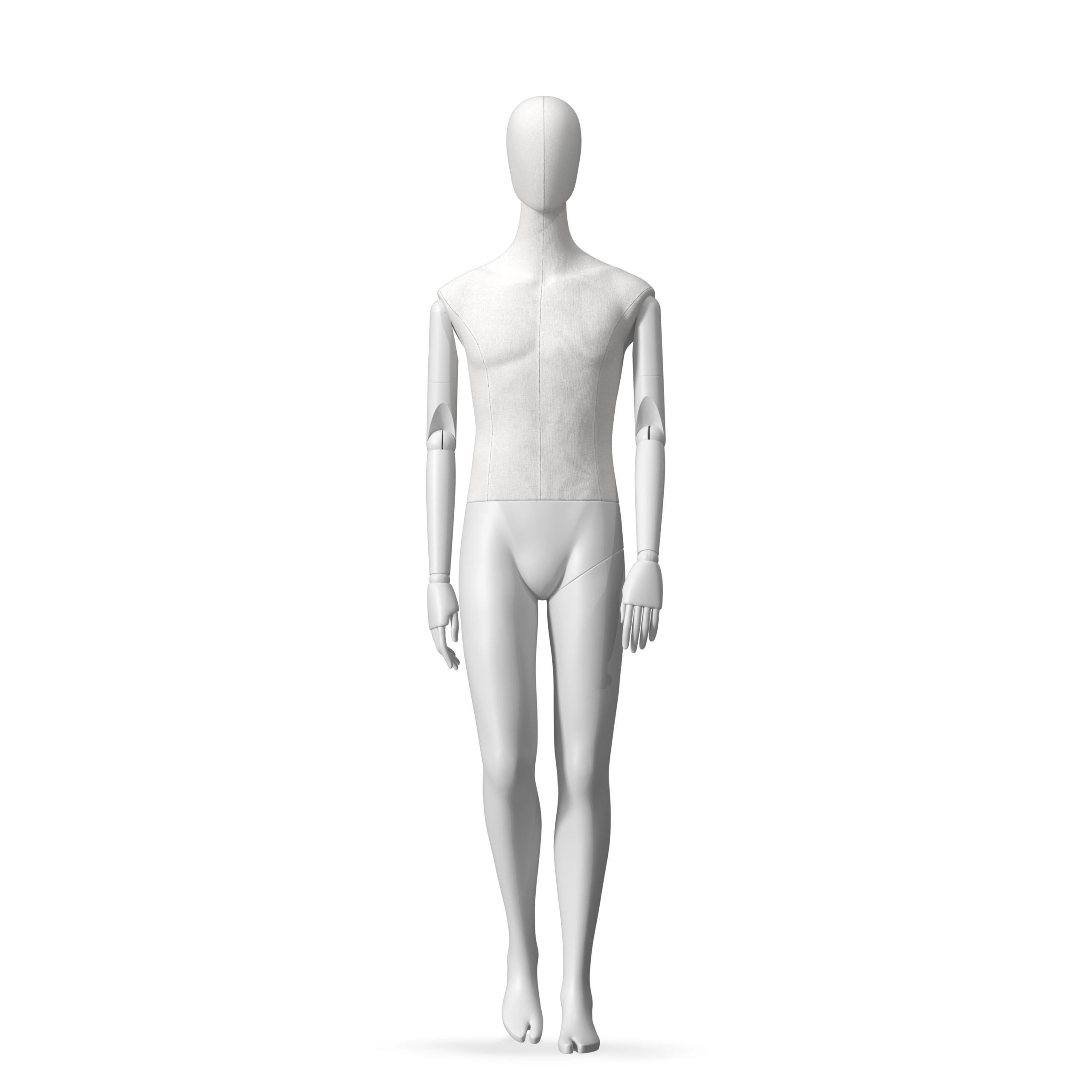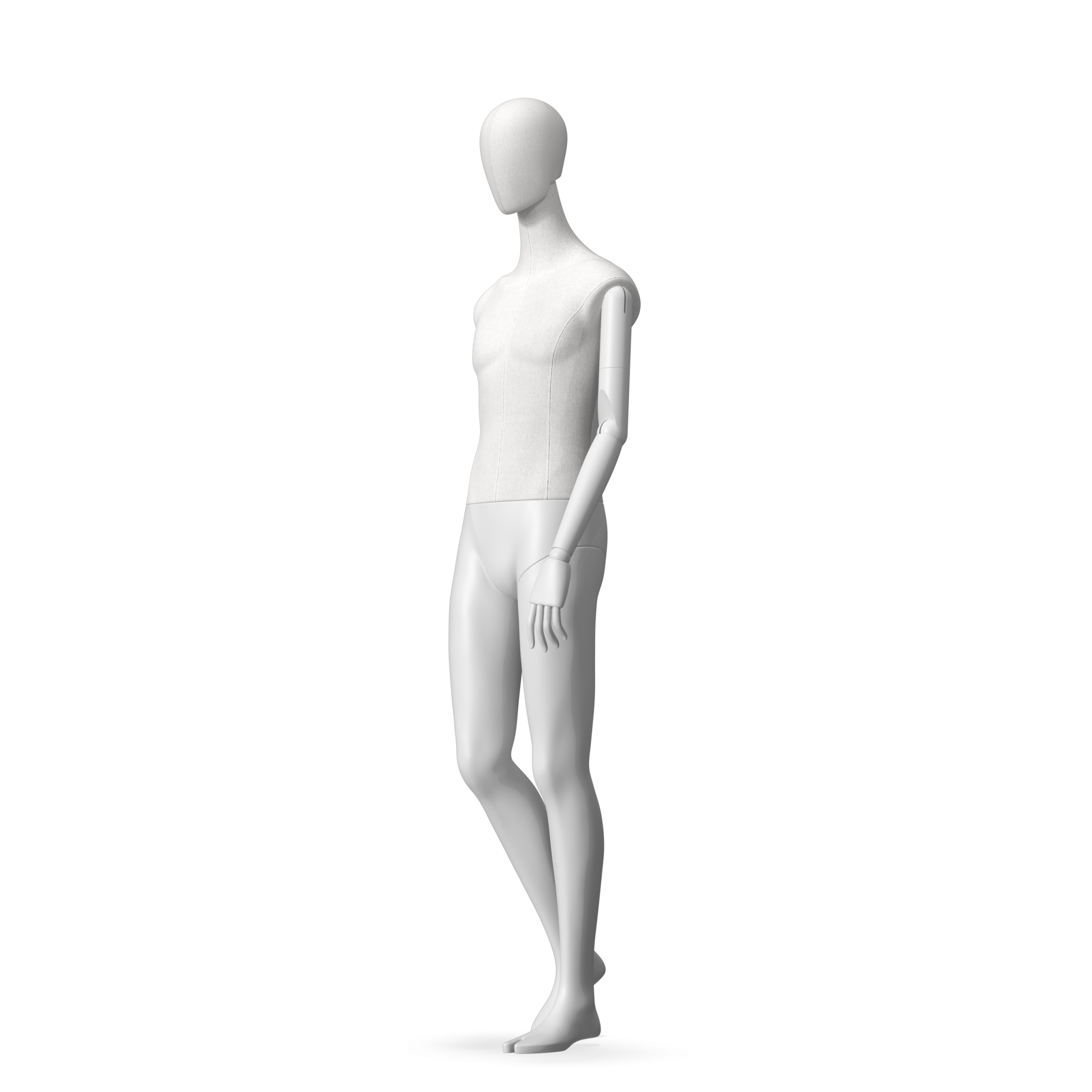 The Male Radiant Fabric is covered with fbr-amjf640 canvas linen look fabric and has C8 white matte, wooden articulated arms. He has a detachable 360˚ Egg Head with a NO-GAP design. Different head options can be ordered seperately. A 42cm Round Glass Base with a Silver Chrome Upright & Calf Pin is included.