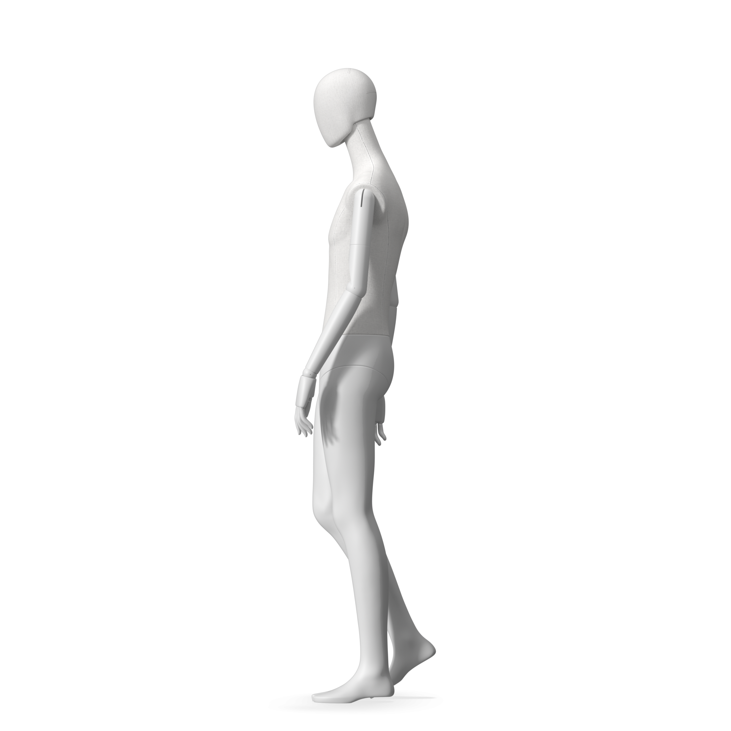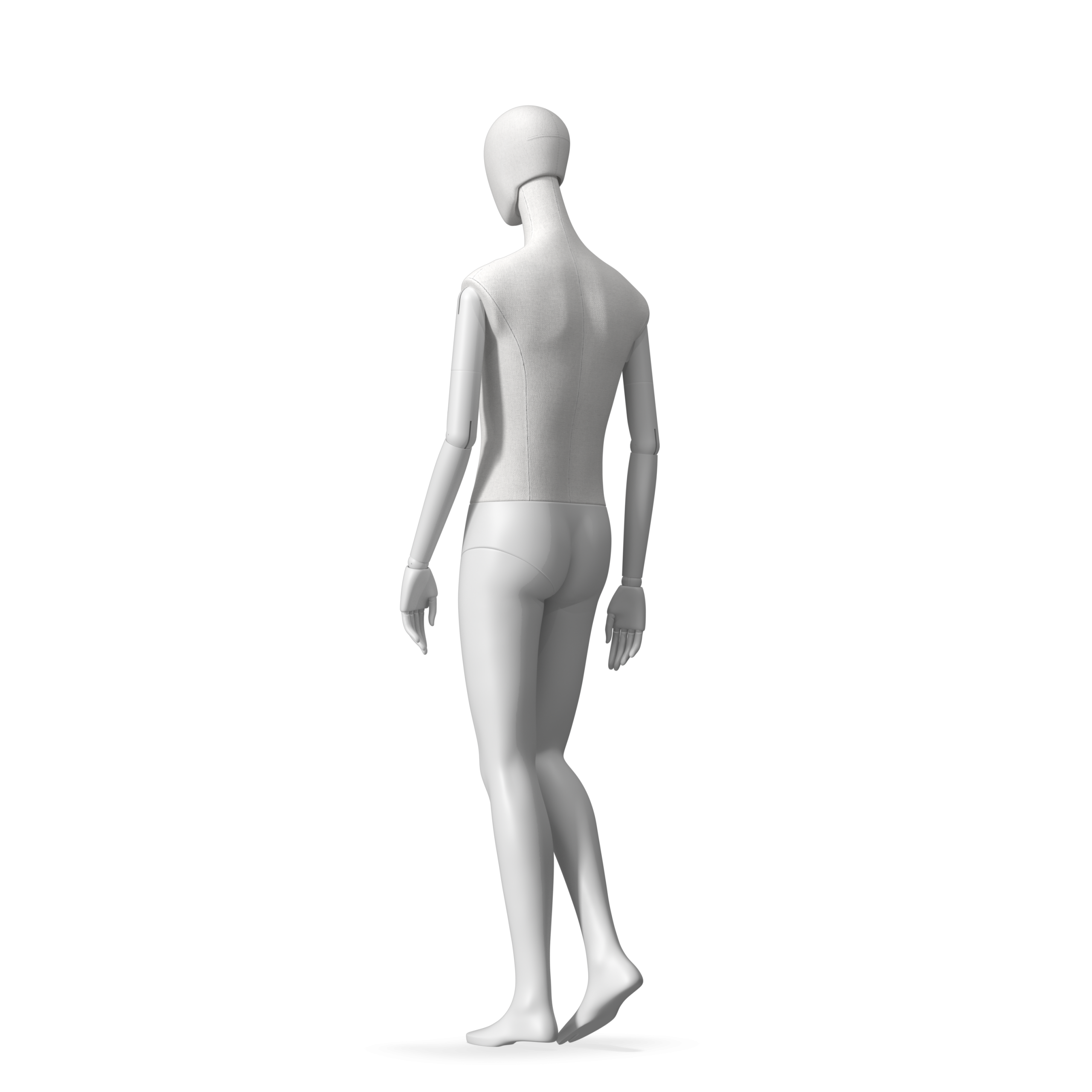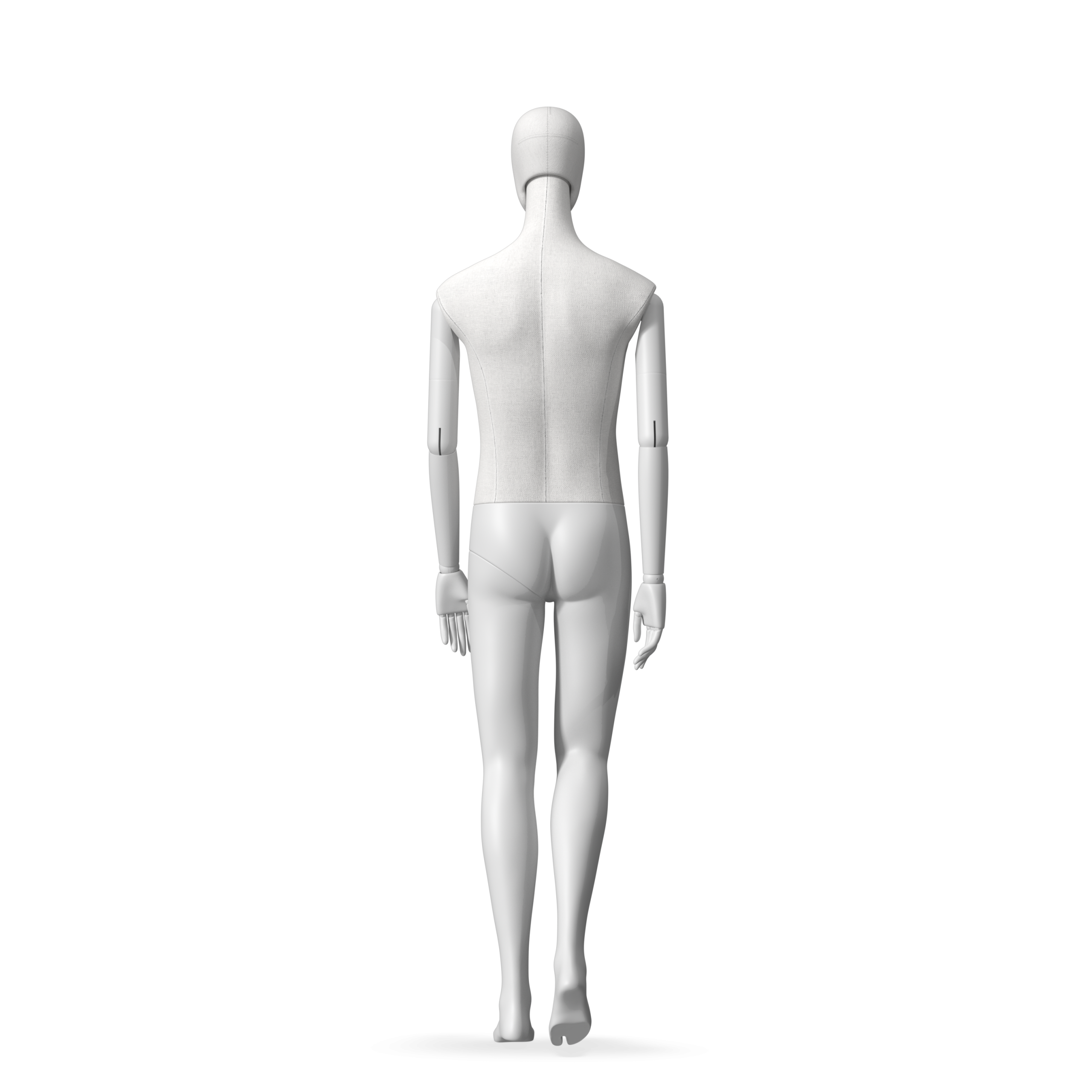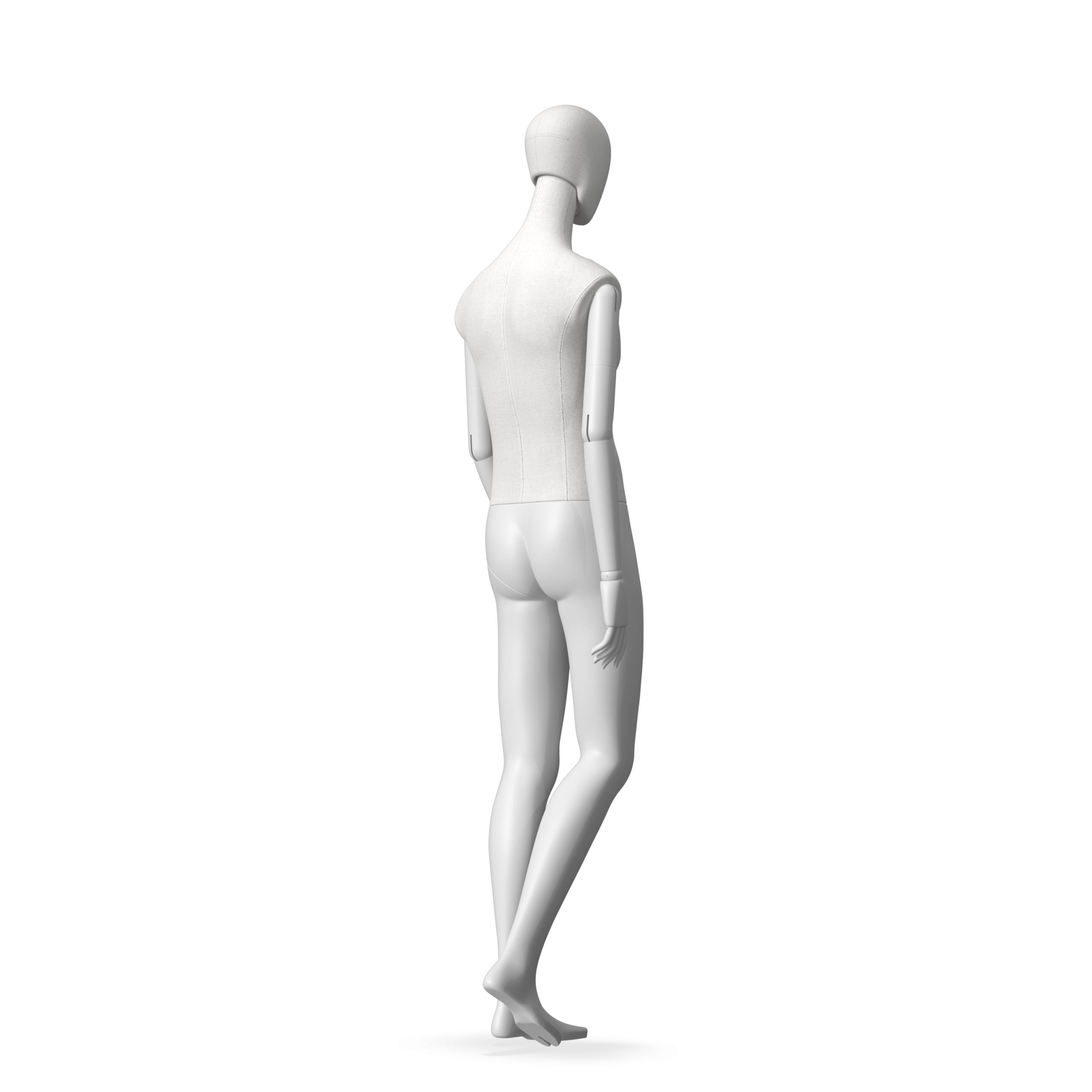 The Male Radiant Fabric is covered with fbr-amjf640 canvas linen look fabric and has C8 white matte, wooden articulated arms. He has a detachable 360˚ Egg Head with a NO-GAP design. Different head options can be ordered seperately. A 42cm Round Glass Base with a Silver Chrome Upright & Calf Pin is included.