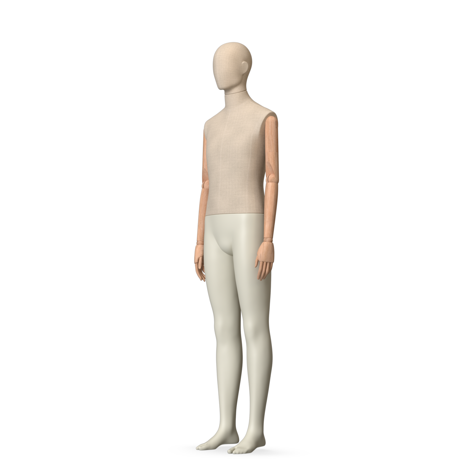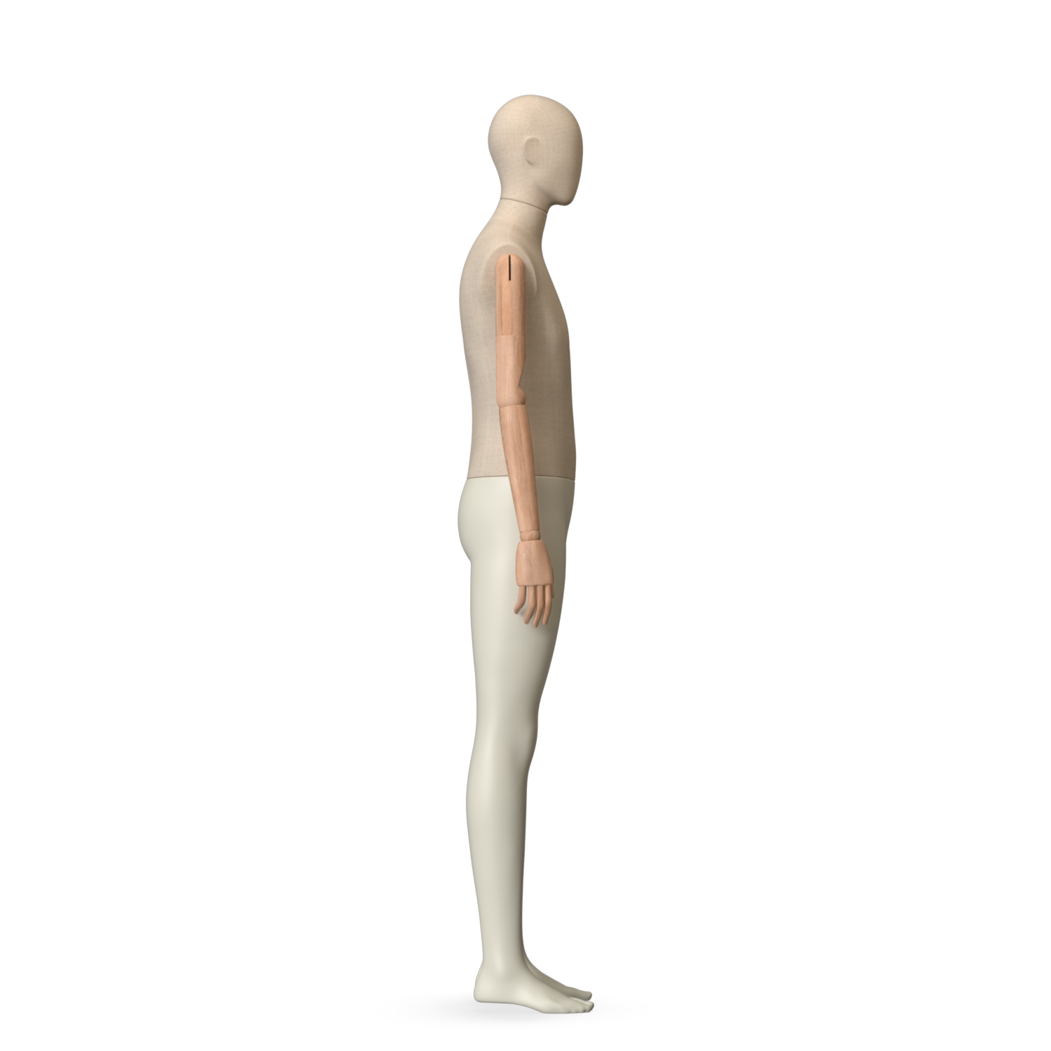 The Male Canvas Articulated has a body with Amjf 643 Canvas Linnen,Pantone 9225C matte legs and Natural Wood articulated arms with Non-Art fingers.