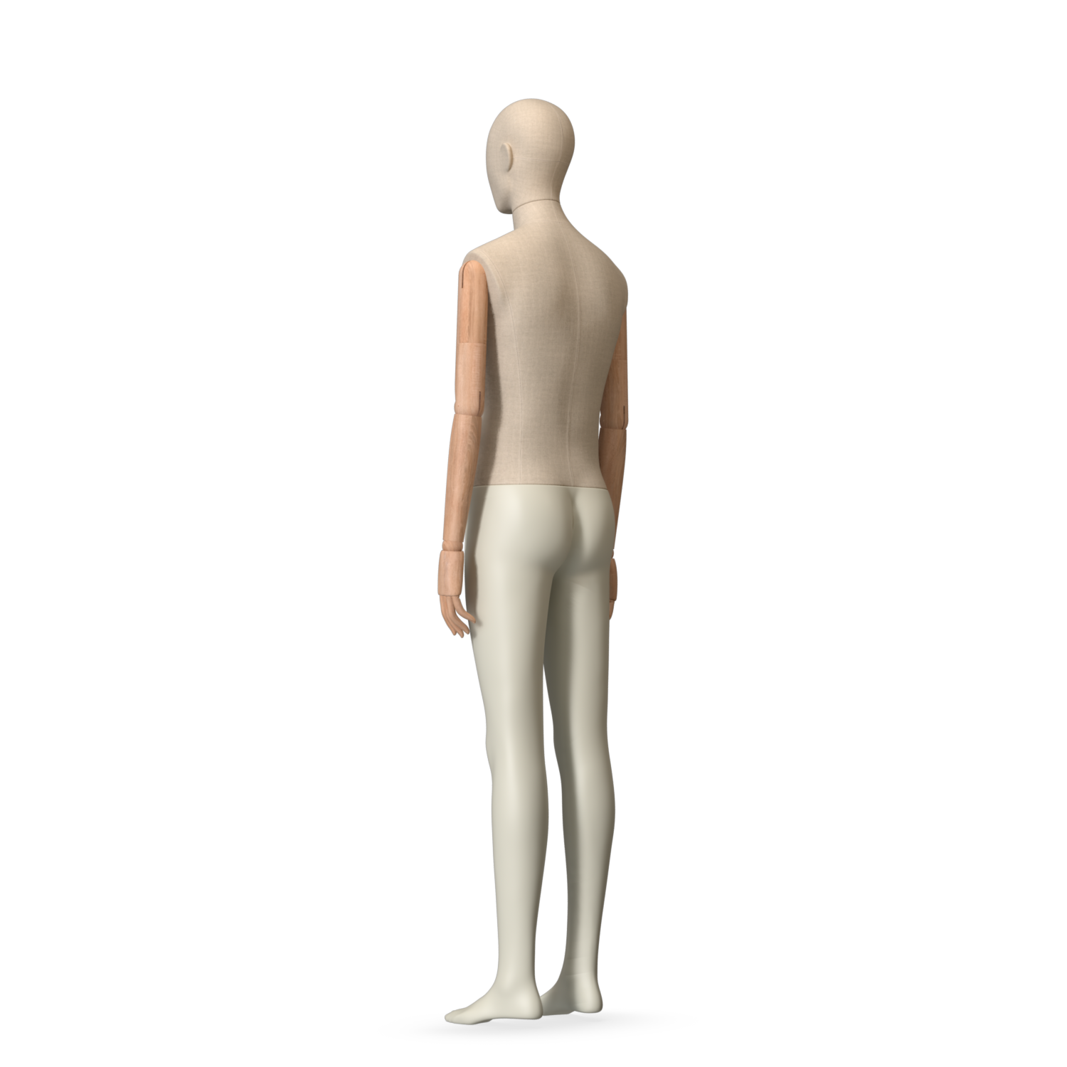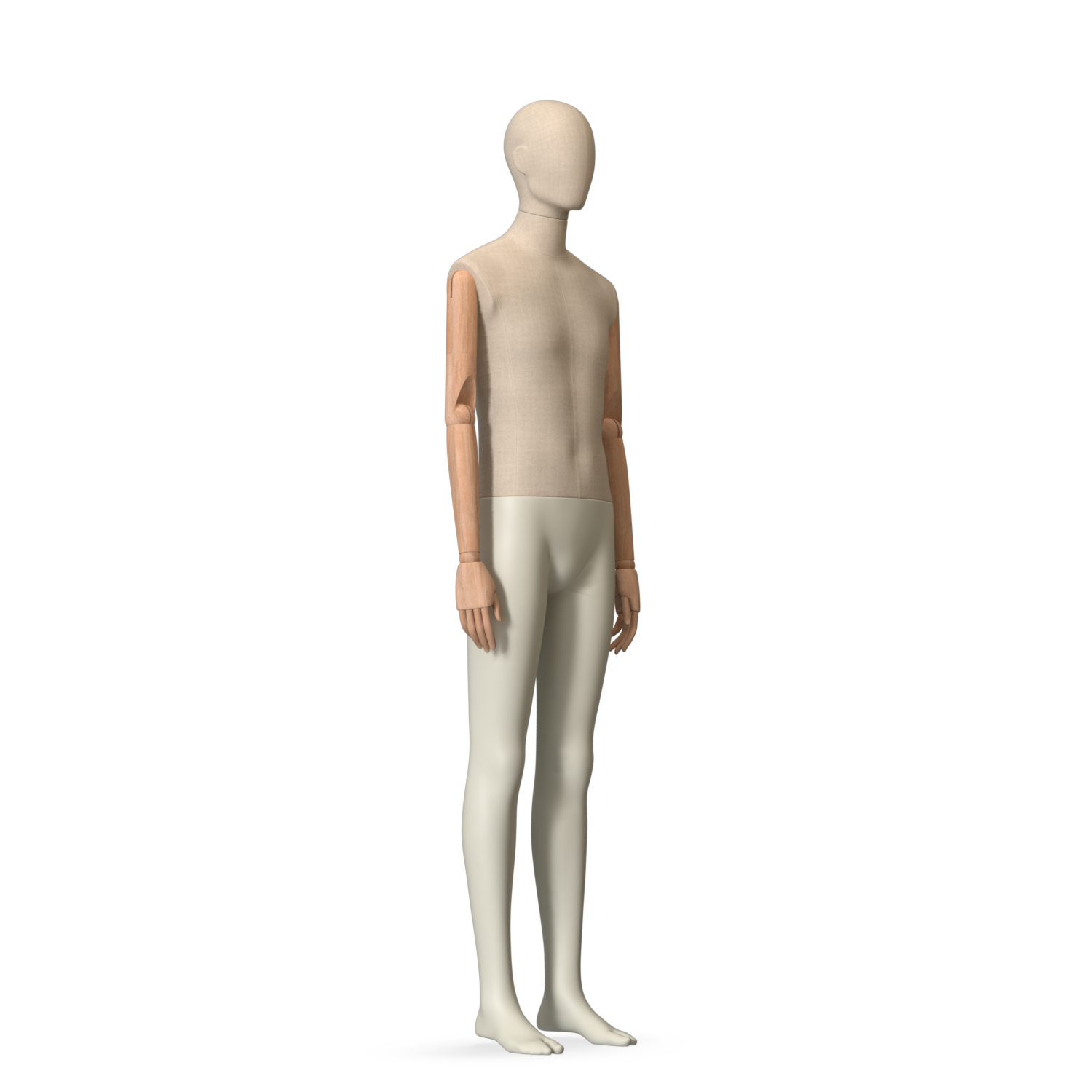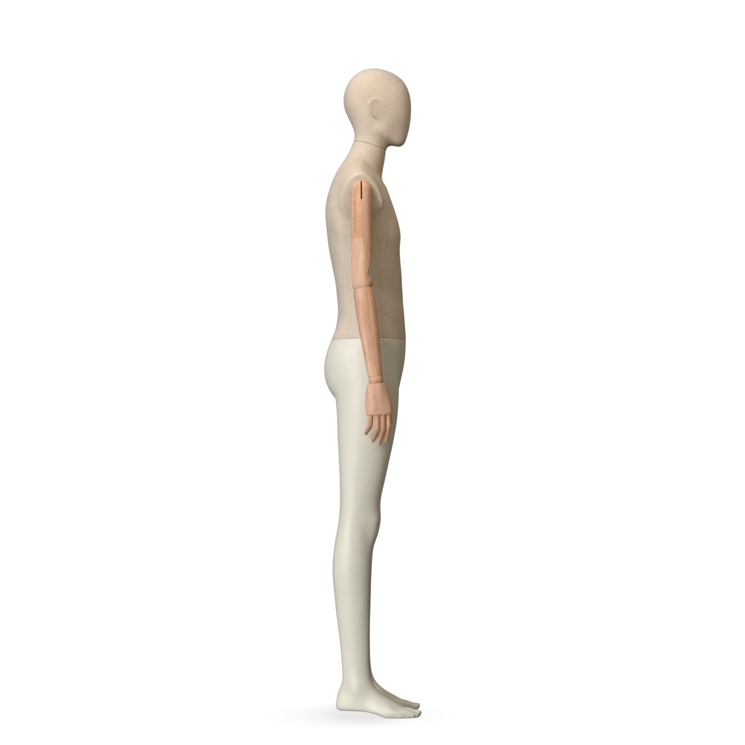 The Male Canvas Articulated has a body with Amjf 643 Canvas Linnen,Pantone 9225C matte legs and Natural Wood articulated arms with Non-Art fingers.