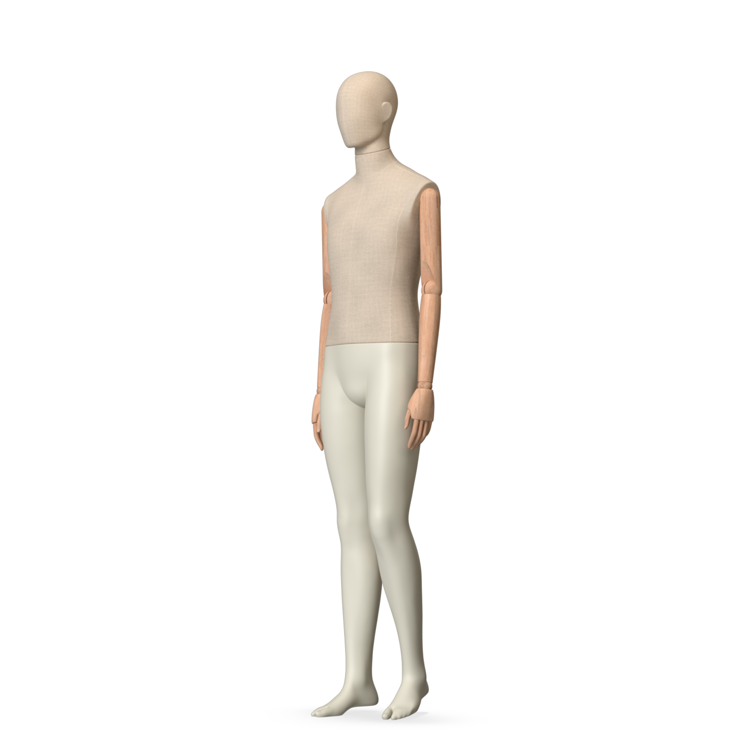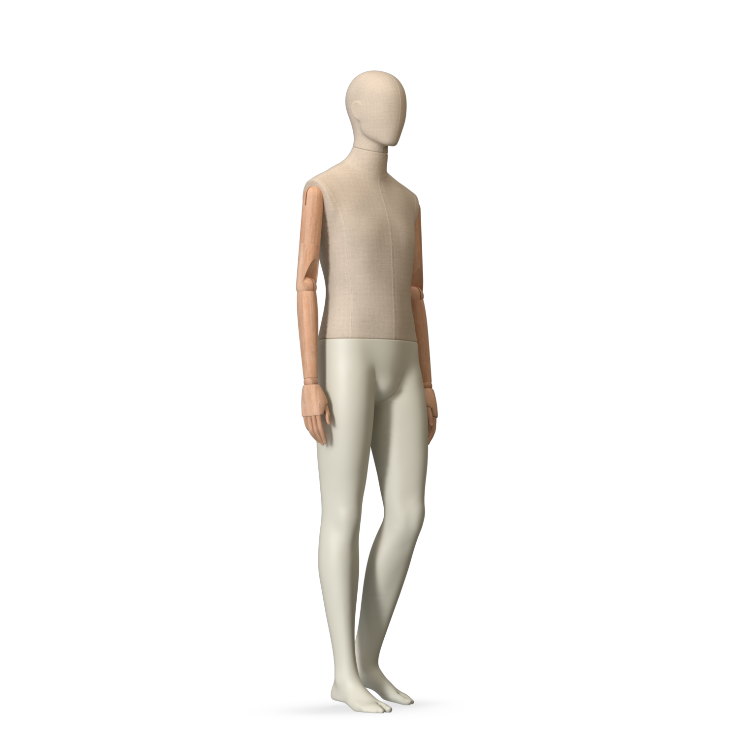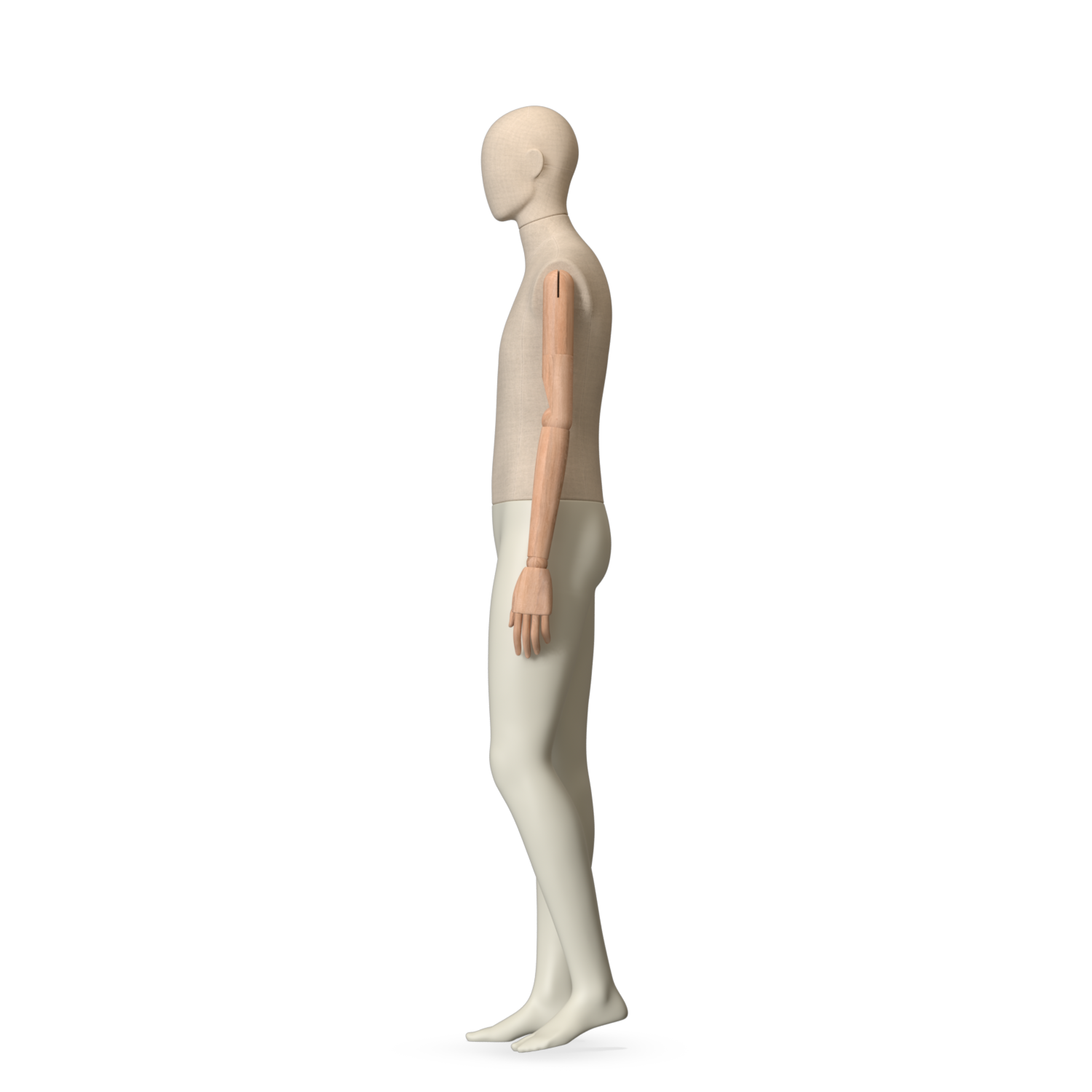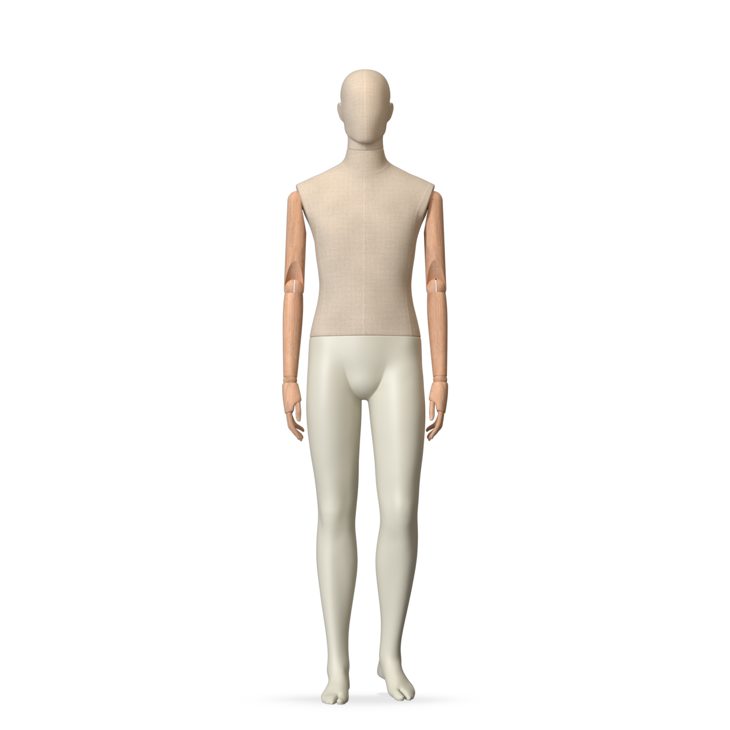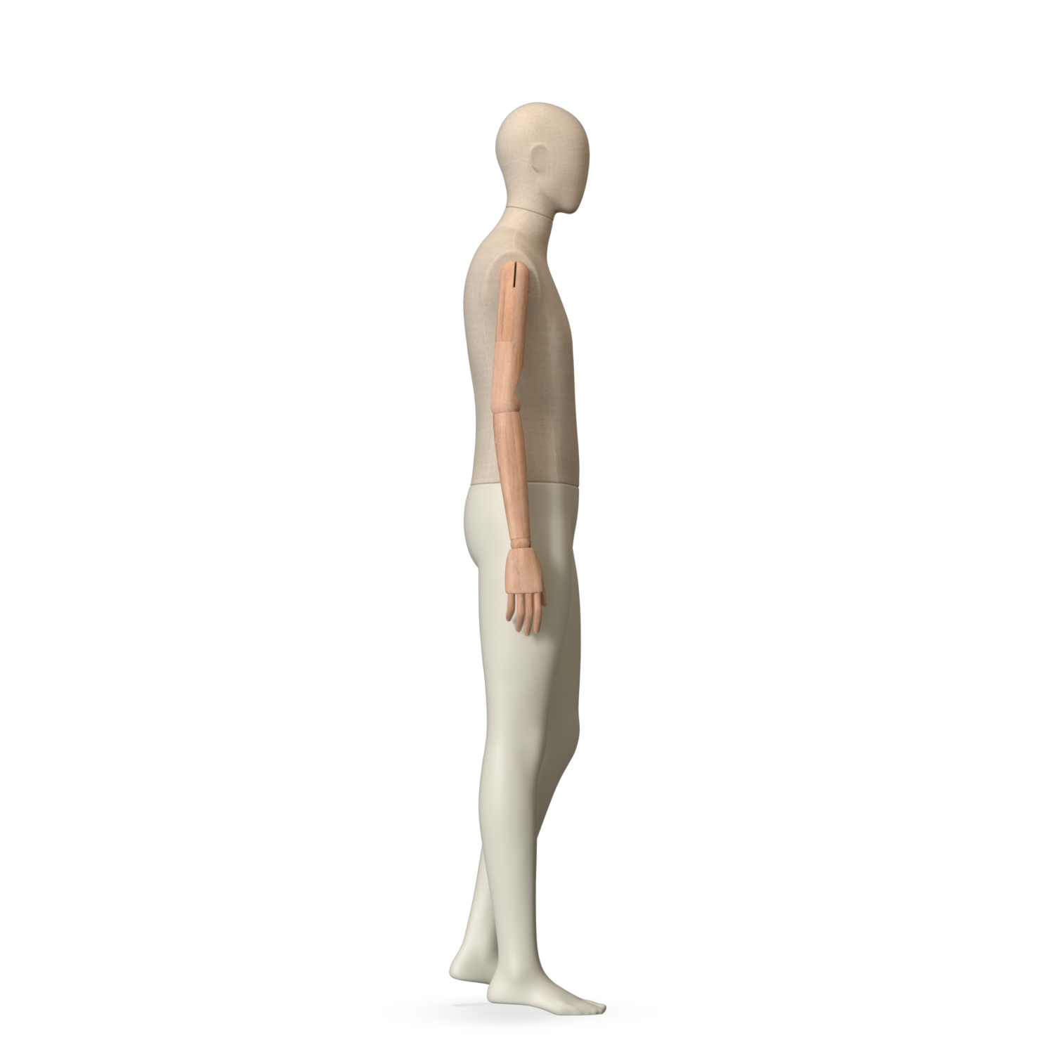 The Male Canvas Articulated has a body with Amjf 643 Canvas Linnen,Pantone 9225C matte legs and Natural Wood articulated arms with Non-Art fingers.
