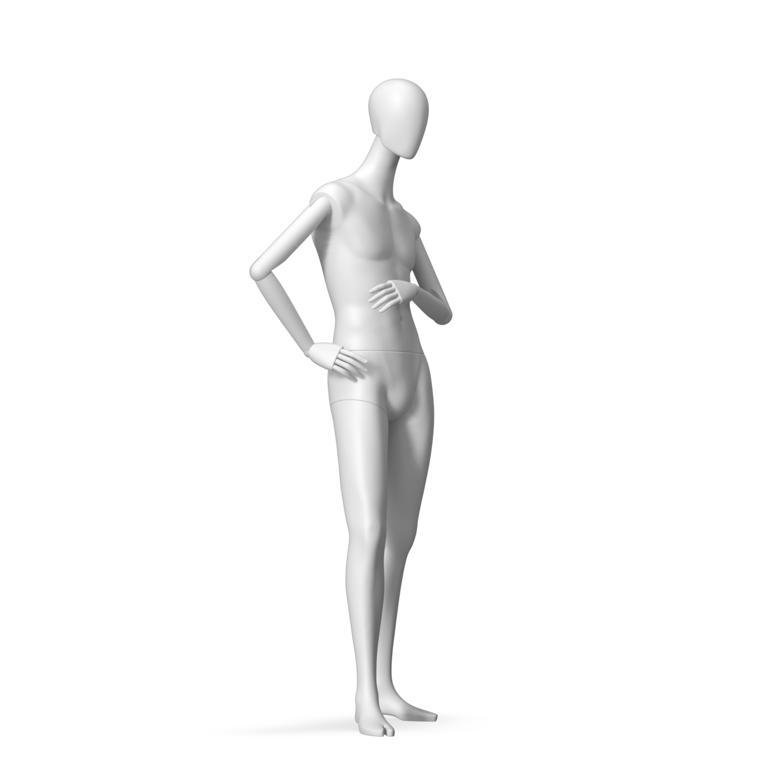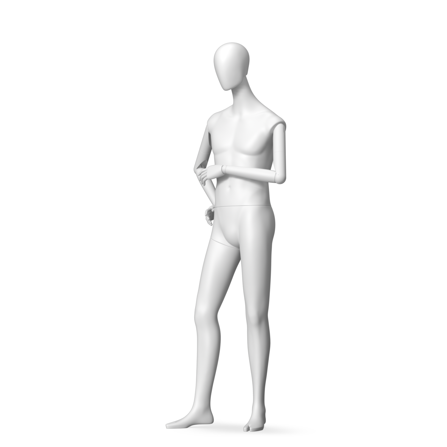 The Male Radiant Articulated is finished in C8 white matte paint, with C8 white matte, wooden articulated arms. He has a detachable 360˚ Egg Head with a NO-GAP design. Different head options can be ordered seperately. A 42cm Round Glass Base with a Silver Chrome Upright & Calf Pin is included.